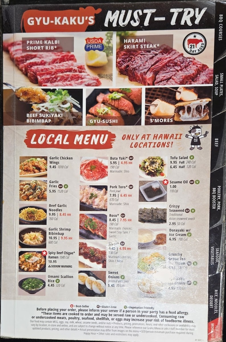 If you’re craving Japanese BBQ in Kaneohe, the Gyu-Kaku Menu at 46-056 Kamehameha Hwy Unit F-1 is where things get seriously tempting. Right away, you’ll notice it’s built for sharing, with plates of marinated meats ready to hit the grill at your table. From tender Harami skirt steak to melt-in-your-mouth Kalbi short ribs, every cut is seasoned just enough to let the flavor shine once it sizzles over the flame.