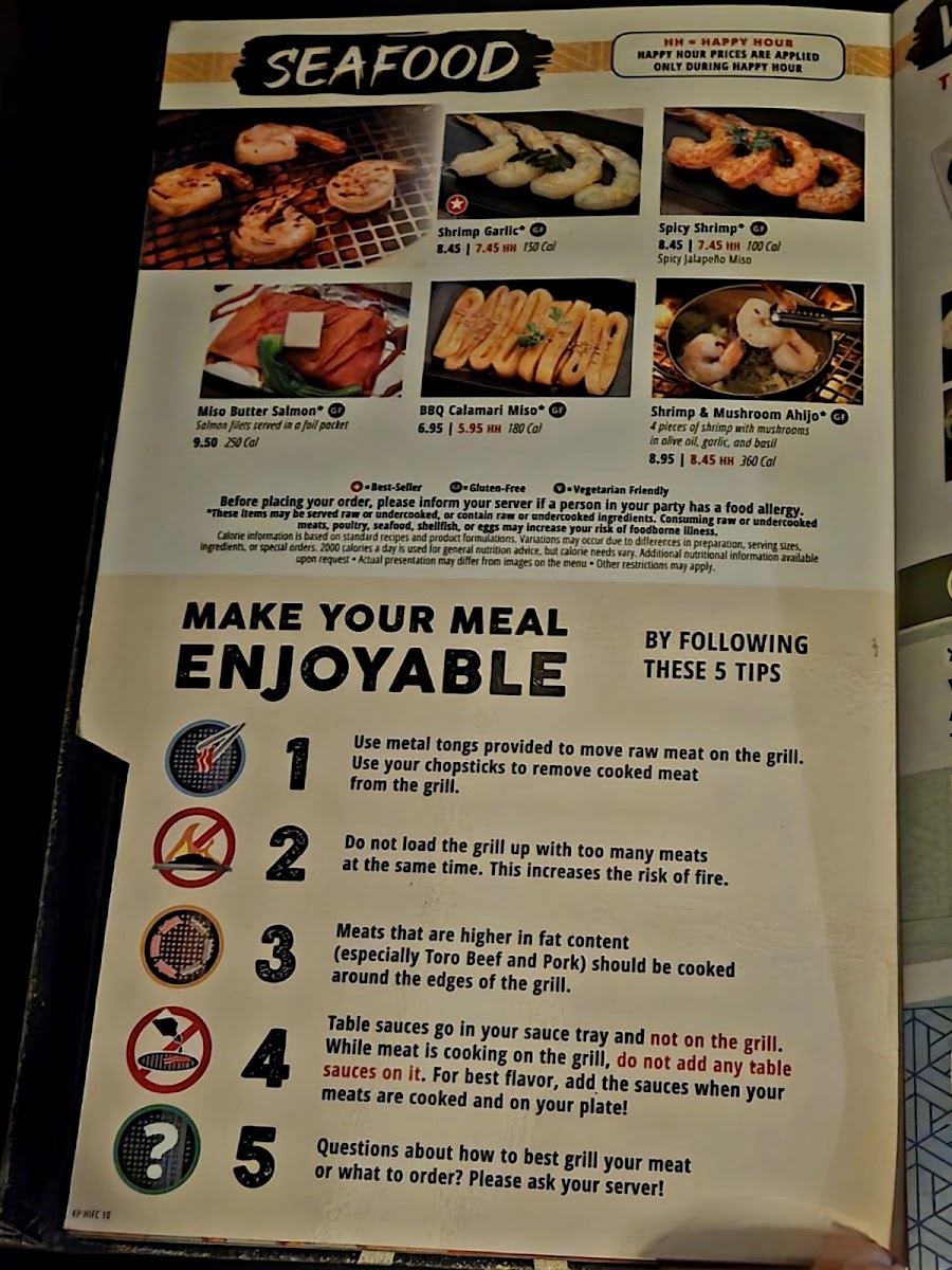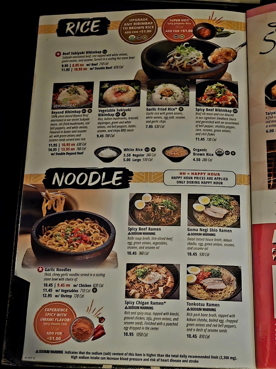 Then there’s the variety. Alongside the classic beef options, you’ll find pork belly, garlic shrimp, and even spicy chicken that caramelizes beautifully as it cooks. It’s easy to mix and match, especially when you add starters like miso soup, seaweed salad, or crispy gyoza. And because no grill session feels complete without something comforting on the side, bowls of rice, flavorful noodles, and savory fried rice round everything out. Whether you’re planning a casual weeknight dinner or meeting up with friends, this menu makes the whole experience feel interactive and fun.
